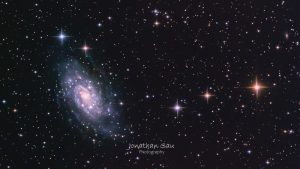 How big is the universe? Every star in this image is within the Milky Way, our home galaxy. Through this star field we can see NGC2403, a spiral galaxy about 50,000 lightyears in diameter, half the size of Milky Way. The photons from NGC2403 travelled for 10 million years, before falling on the camera sensor to create this image. Yet, Milky Way and NGC2403 are just two of the estimated 2 trillion galaxies in the universe.