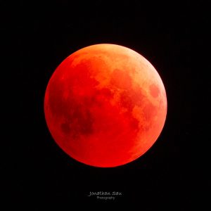 A total lunar eclipse is also called a “blood moon”. The eclipsed moon is not totally dark – sunlight can reach the moon via refraction by Earth’s atmosphere. The reddish colour of the moon is due to the blue part of sunlight being scattered by Earth’s atmosphere, leaving primarily red and orange light reaching the moon – the exact same reason why the sun is orange during sunset.