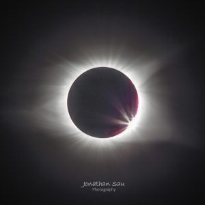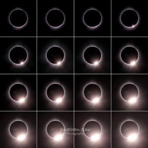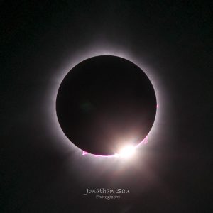 3: Diamond ring, captured at the end of totality, when the first rays of sunlight shone through depressions from craters on the lunar surface. The bloom from the strong sunlight formed the “diamond” on the ring of corona.
