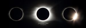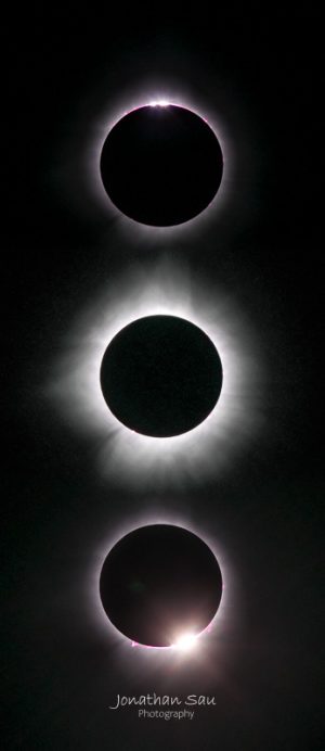 This composite image captures three different views of the total solar eclipse of August 21, 2017.