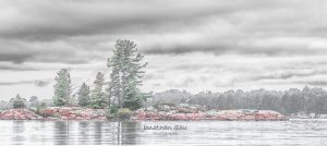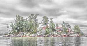 “Rugged” captures the views around the Chikanishing River and Collins Inlet area. Our kayak gave us great vantage points from the water, unencumbered by land. This image started out as a regular photograph. Through creative digital edits, I worked on colours and texture, striving to bring out the feeling Killarney brings to me – tranquility, and an appreciation of the untamed beauty, sculpted by forces of nature.