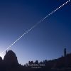This composite image of the October 14, 2023 annular solar eclipse was captured from Kodachrome Basin State Park in Utah. The landscape was taken just before the rising sun cleared the hoodoo, and then 58 exposures of the sun (captured with solar filter), taken 4 minutes apart, covering the entire duration of the eclipse, were added. As with all my astro landscape images, all exposures were taken from the same camera position, using the same lens, therefore accurately reflecting the actual unfolding scene. An annular solar eclipse happens when the moon goes between the sun and Earth while near its apogee (furthest point from Earth in its elliptical orbit), and therefore does not complete cover the sun. While not as spectacular as a total solar eclipse, the “ring of fire” is still a sight to behold.